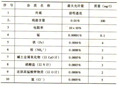 蓄電池用水的標(biāo)準(zhǔn),我國原第一機械工業(yè)部對蓄電池用水的要求見表l-3。表l-3中雜質(zhì)鐵、銨、氯等對鉛酸蓄電池危害較大,制造廠要從嚴(yán)要求。